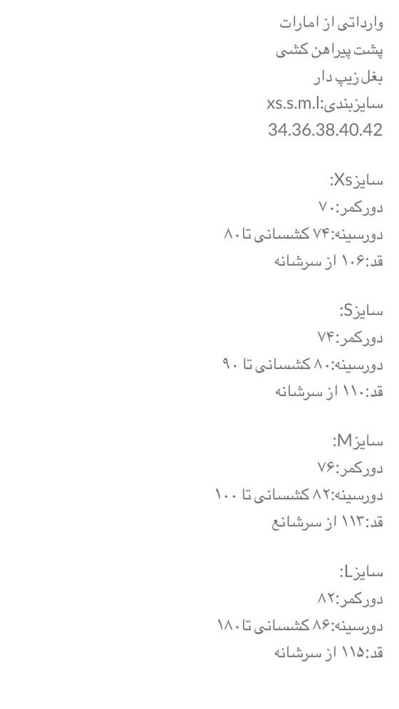 جدول سایزبندی در قسمت تصاویر موجود است